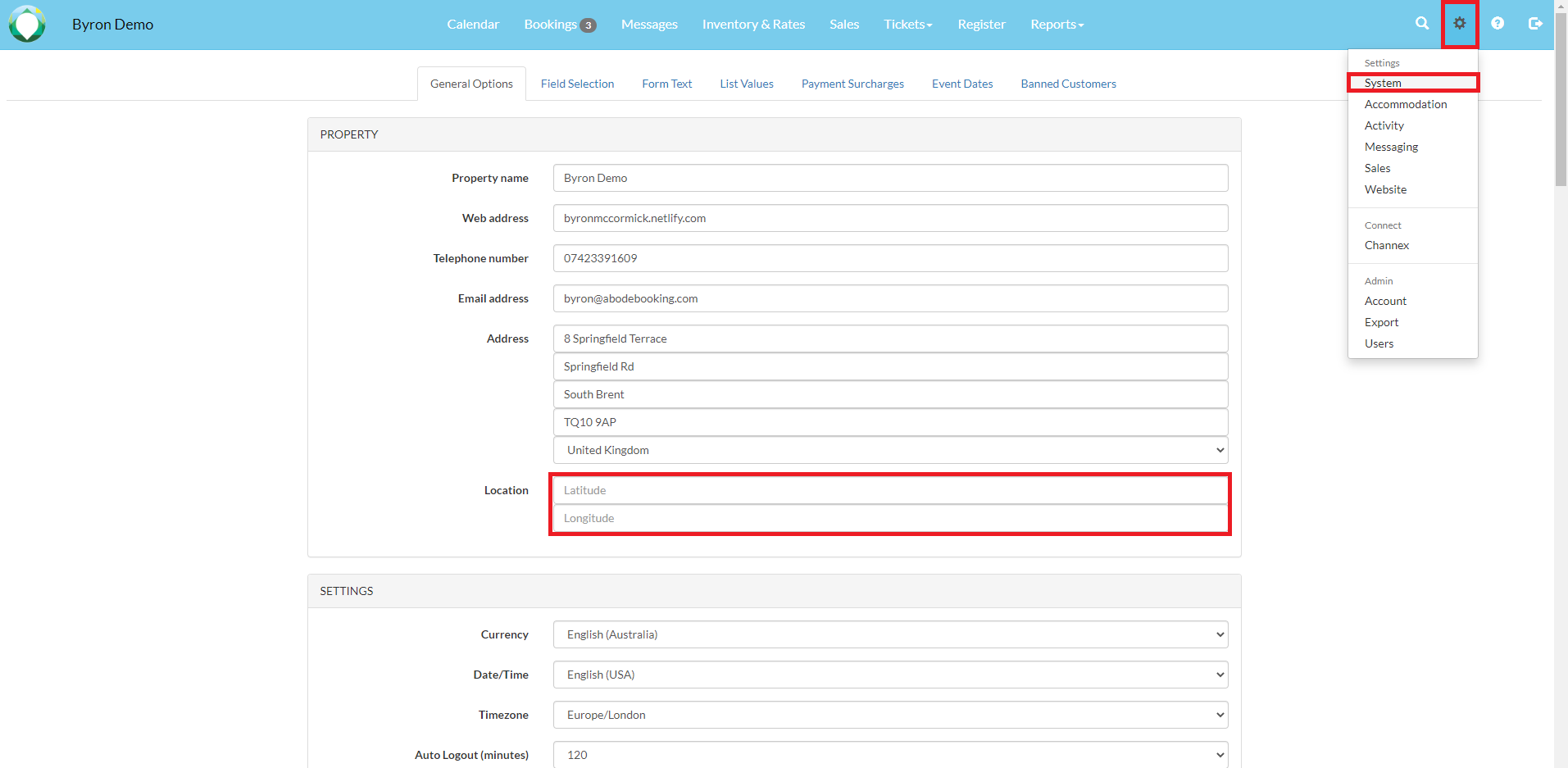 Great work! You have now successfully updated your location for the Abode Booking Engine.